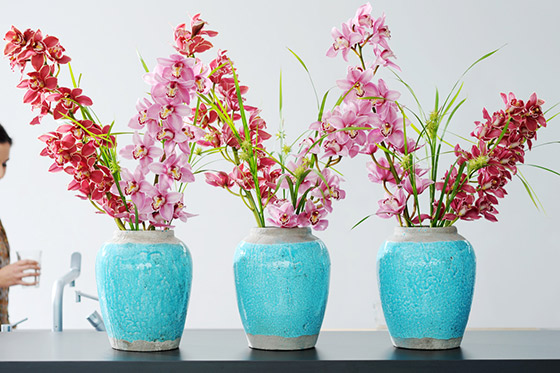 Just a single Cymbidium Orchid stem in a vase or empty wine bottle is already beautiful and gives a luxurious impression. However you can also check out plenty of other stylish floral designs on our pin boards on Pinterest.